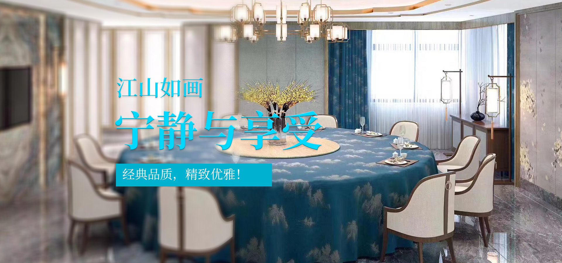 主打產(chǎn)品——臺(tái)布、椅子套、桌布、餐桌用品等一系列酒店專用